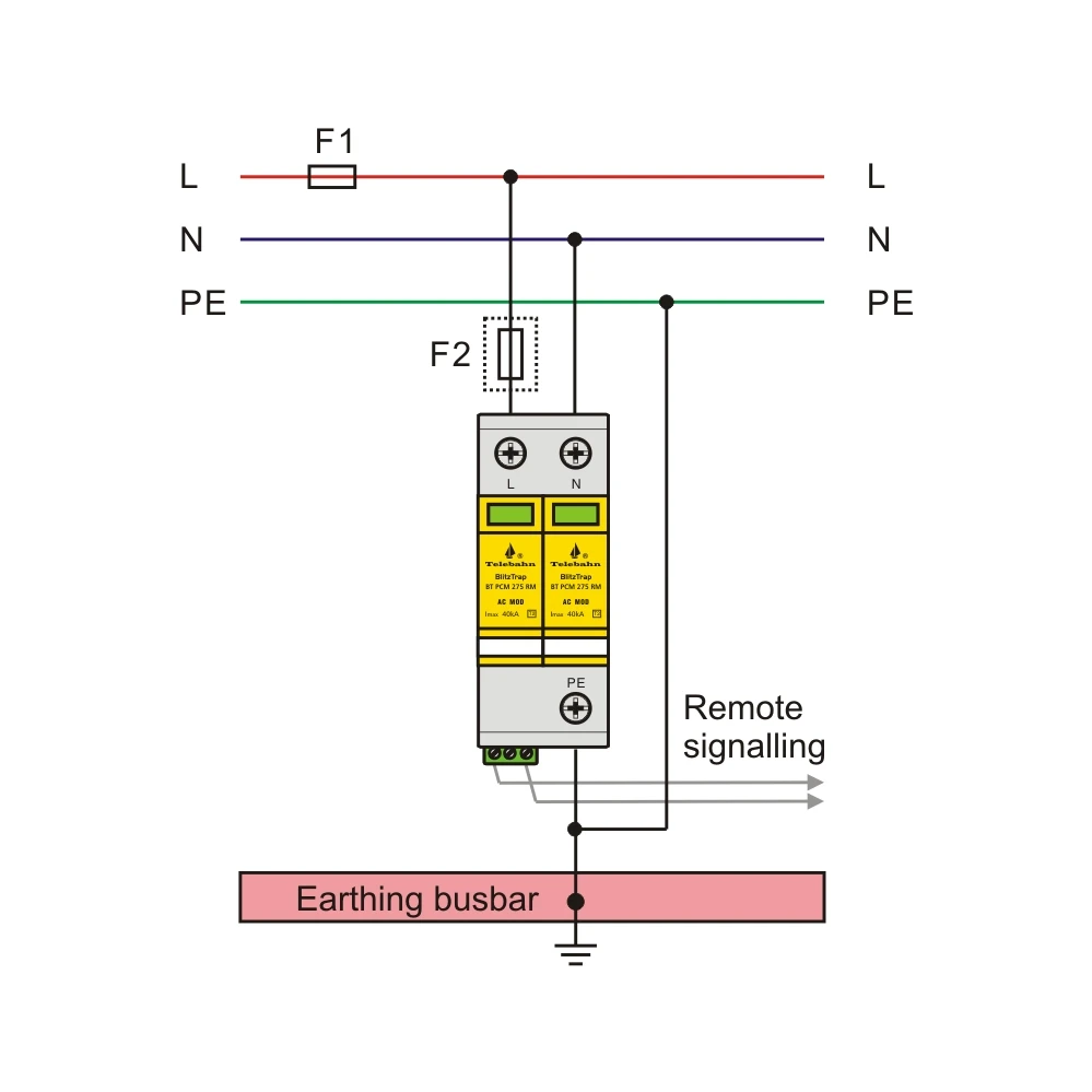 الاستخدام: قابل للإدخال فئة SPD II للتيار أحادي -فاز TN (“2+0”أنظمة إمداد الطاقة الكهربائية.)