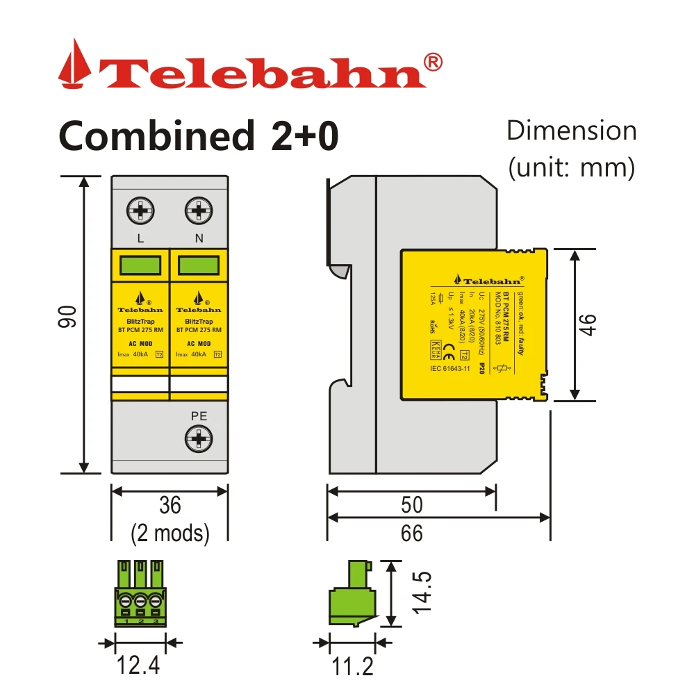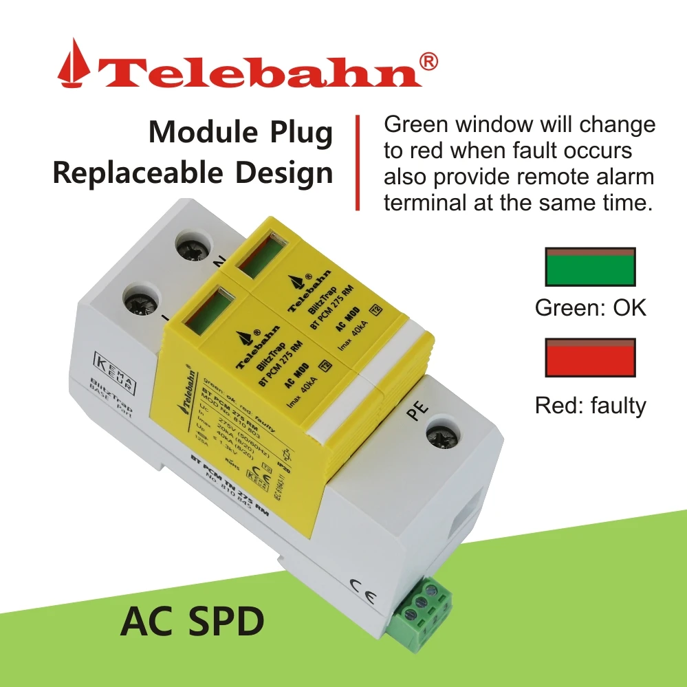 جهاز حماية من الصواعق ثنائي القطب Telebahn AC DPS 2P 120V 150V 10kA-20kA 20kA -40kA 30kA-60kA T2 جهاز حماية من زيادة التوتر جهاز واقٍ من زيادة الجهد